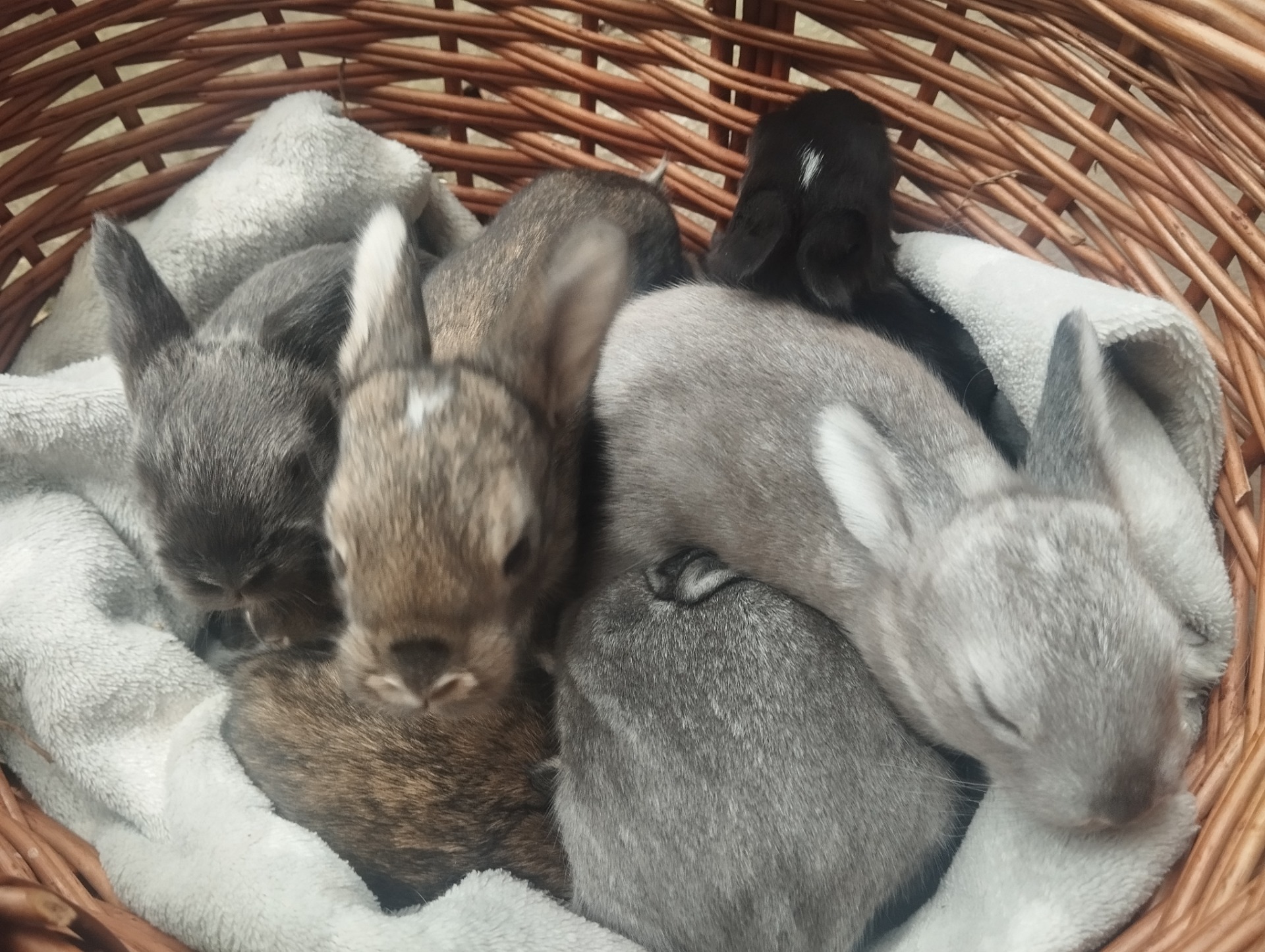 Tak už víme, že máme 7 malých angorek. Tři v divokém zbarvení, dva v odstínech činčilově šedých, jedno nejspíš modré a jedno černé. To poslední je malinké, takže nejspíš zůstane doma déle nebo na pořád.